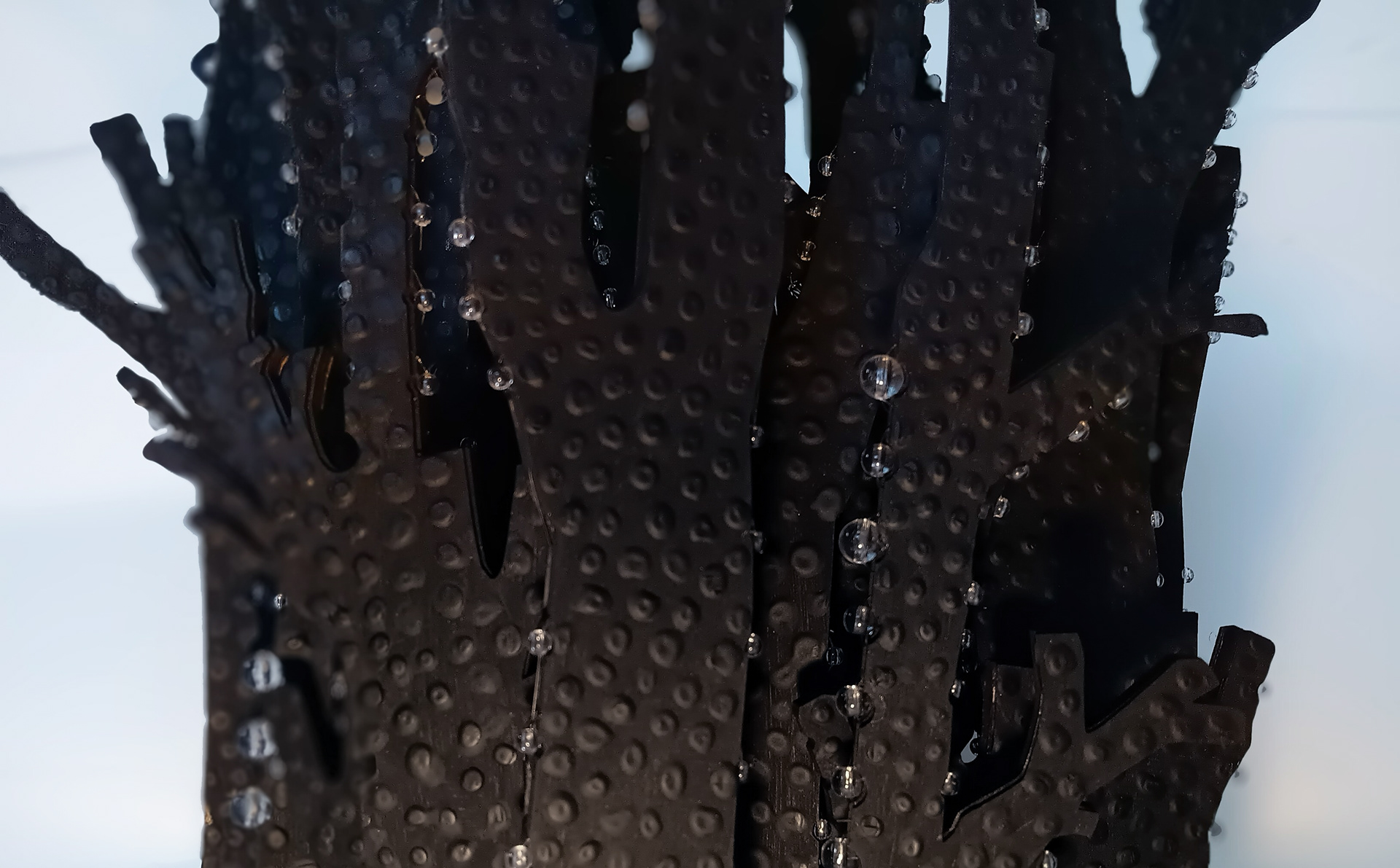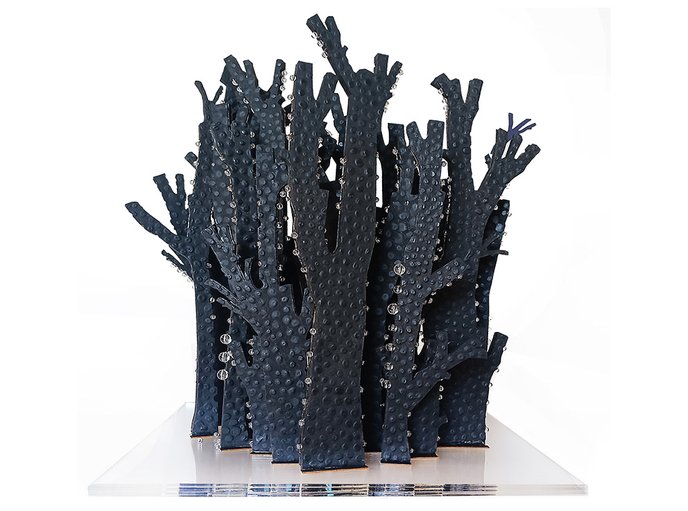 Forêt profonde / Installation bois peint et perles / Format L 30cm x P 24cm/ H 35cm