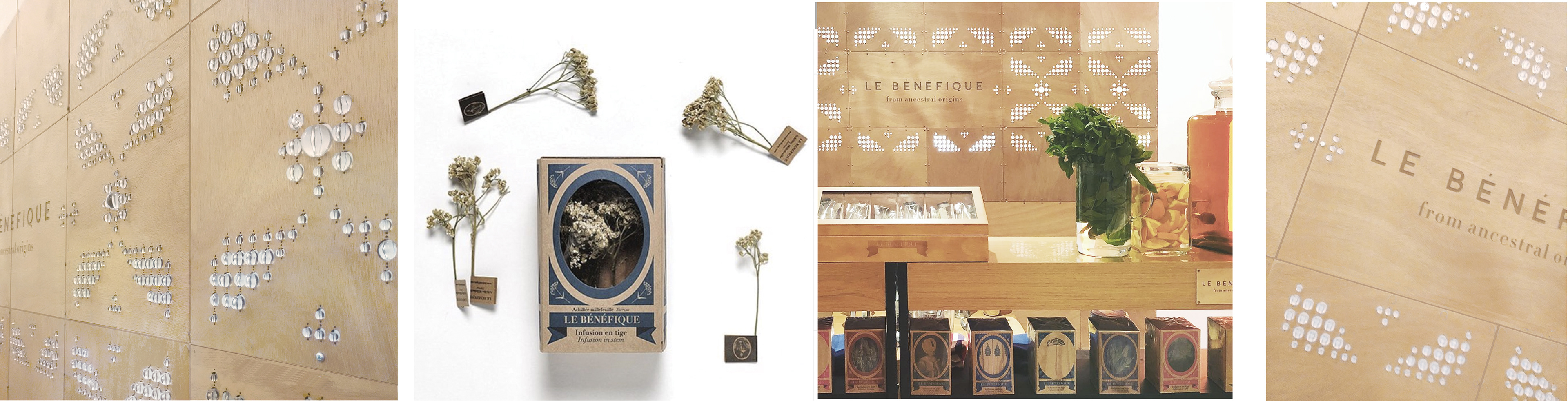 Conception du bar à tisanes " le Bénéfique" , marque française de tisanes bio en tiges cueillies en Turquie