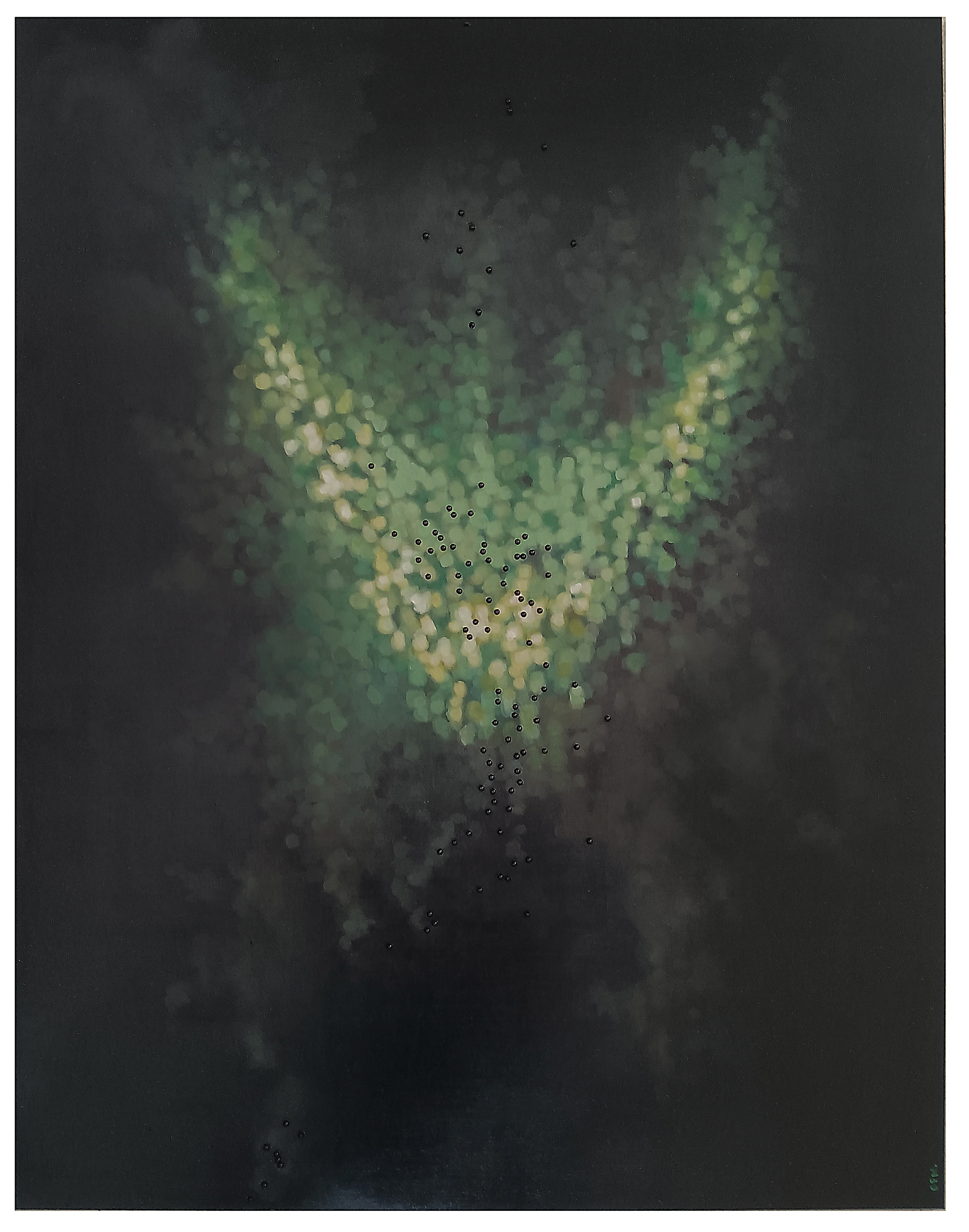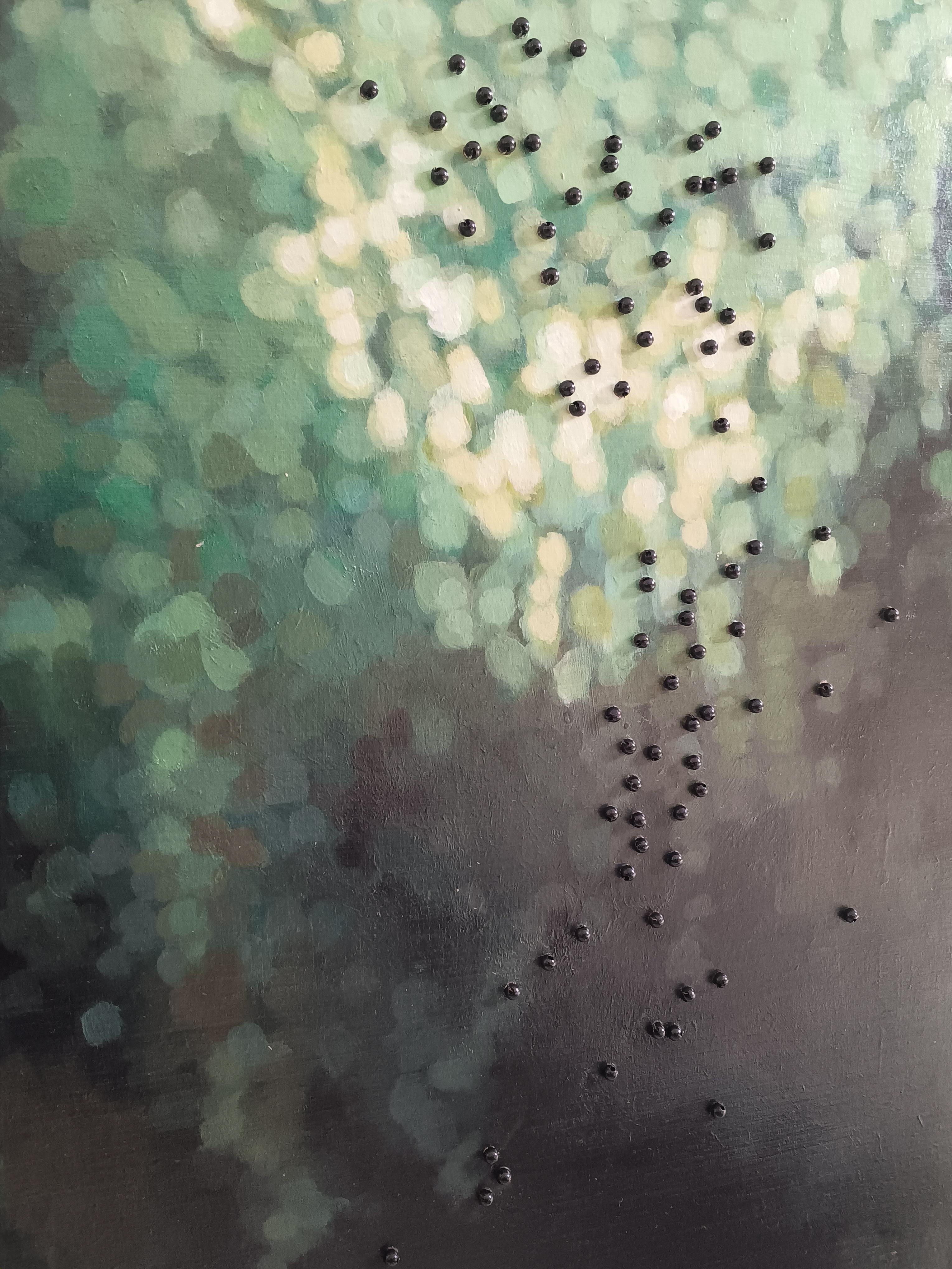 Extrait du poème «Évasion» de Isabelle Callis-Sabot / Peinture acrylique perlée sur bois